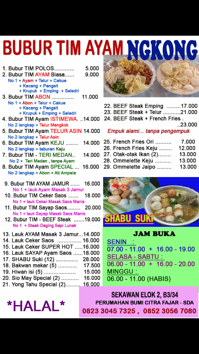 Welcome to Bubur Tim Ayam Ngkong, a unique gem in Sidoarjo specializing in porridge and authentic Chinese cuisine. Located at Perumahan Bumi Citra Fajar, this restaurant promises a delightful dining experience perfect for families.